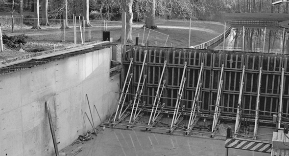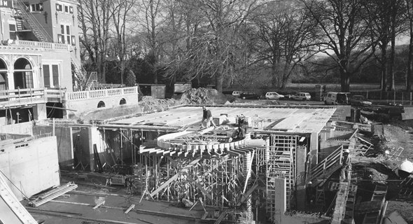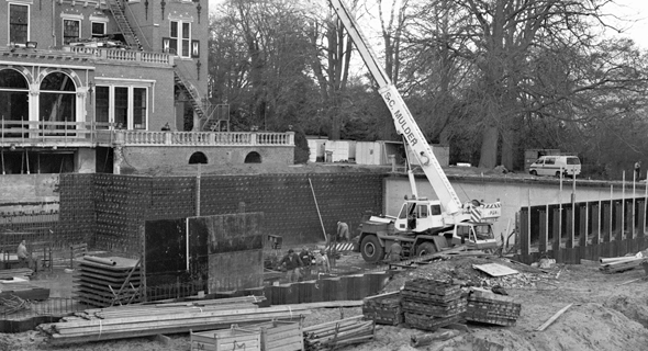 Mulder Betonbouw realiseerde een nieuwe kelder voor een nieuwe conferentiezaal. Deze direct aan het water liggende kelder is uitgevoerd met enkelzijdige bekistingen.