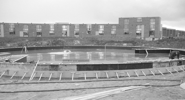Realisatie van een betonnen vijverbak.